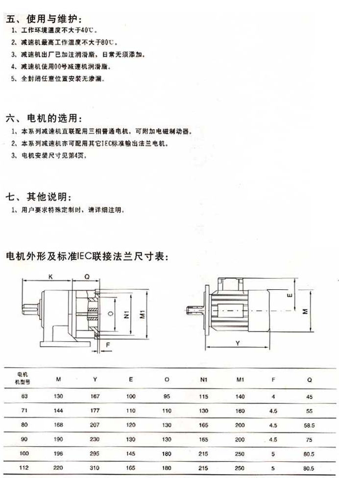 使用與維護(hù)電機(jī)的選用其他說明電機(jī)外型及標(biāo)準(zhǔn)IEC聯(lián)結(jié)法蘭尺寸表
